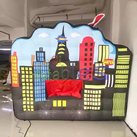 Eroe tema parete gonfiabile edificio gonfiabile fondale per festa di compleanno personaggio dei cartoni animati foto cabina parete sfondo
